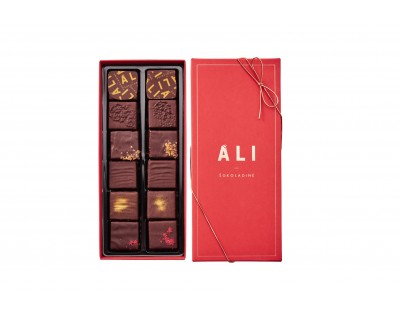 Skonis: pasiflorų „Pate de fruit“ (2 vnt.), traškių lazdynų (2 vnt.), razinų ir viskio (2 vnt.), aviečių „Pate de fruit“ (2 vnt.), vanilės (2 vnt.), mangų ir pasiflorų (2 vnt.).