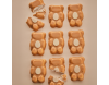 Minkštas, lengvas meškučio formos vanilinis zefyras, aplietas belgišku baltuoju šokoladu su pieninio ir apelsinų skonio šokolado natomis, rankose laikantis šokoladinį kiaušinį.