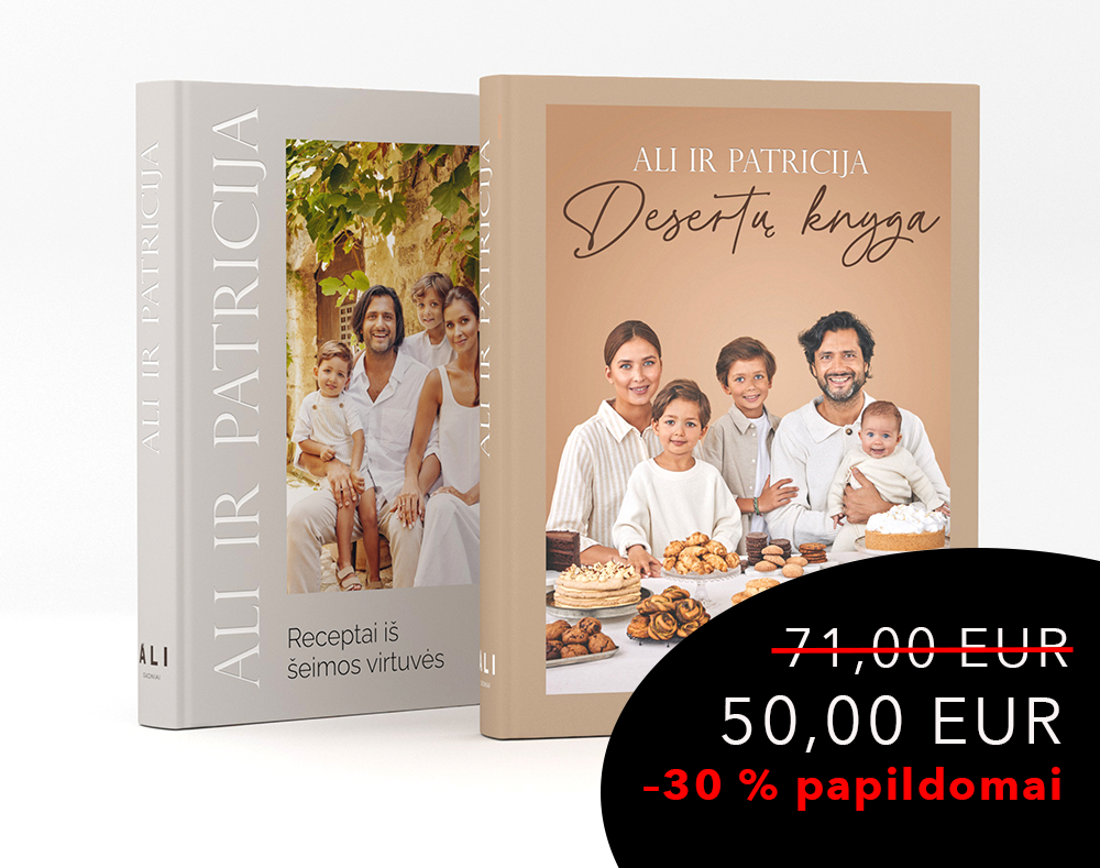 Užsisakykite Ali ir Patricijos Gadžijevų knygų rinkinį „Desertų knyga“ ir „Receptai iš šeimos virtuvės“ specialia kaina!