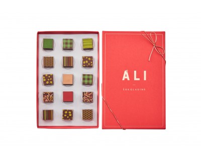 Saldainių sudedamosios dalys: juodasis šokoladas (kakavos masė, cukrus, kakavos sviestas, emulsiklis sojų lecitinas, vanilės kvapioji medžiaga), grietinėlė, baltasis šokoladas (cukrus, kakavos sviestas, nenugriebto pieno milteliai, emulsiklis – sojų lecitinas, vanilės kvapioji medžiaga), pieninis šokoladas (cukrus, kakavos sviestas, nenugriebto pieno milteliai, kakavos masė, emulsiklis – sojų lecitinas, vanilės kvapioji medžiaga), karamelė (gliukozės sirupas, saldintas sutirštintas pienas, augaliniai riebalai (kokoso), druska, kvapiosios medžiagos, emulsiklis – E471), sviestas, saldiklis sorbitolis, lazdynų riešutų pasta (lazdynų riešutai, cukrus, emulsiklis – sojų lecitinas), aviečių tyrė, pasiflorų tyrė (pasiflorų tyrė, cukrus), šaltalankių tyrė, pieninis riešutinis šokoladas (cukrus, lazdynų riešutai, kakavos sviestas, nenugriebto pieno milteliai, kakavos masė, emulsiklis – sojų lecitinas), apelsinų skonio šokoladas (cukrus, kakavos sviestas, nenugriebto pieno milteliai, emulsiklis – sojų lecitinas, apelsinų kvapioji medžiaga, dažiklis E160e, vanilės kvapioji medžiaga), žaliųjų citrinų tyrė (žaliųjų citrinų tyrė, cukrus), medus, pistacijų pasta (skrudintos pistacijos, druska, dažiklis riboflavinas), gliukozės sirupas, cukrus, kvapiųjų mandarinų tyrė, juodųjų serbentų tyrė (juodųjų serbentų tyrė, cukrus), „Amarula“ likeris (alk. 17% tūrio), invertuotojo cukraus sirupas, kavos pupelės, citrinų žievelės, himalajų druska, degtinė (alk. 40% tūrio), juodoji arbata „Earl grey“, konservantas kalio sorbatas, rozmarinai, čiobreliai, sičuano pipirai, tirštiklis pektinas, dažikliai: E133, E171, E129*, E102*, E172, E100, E162, E110*, E132.