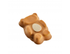 Minkštas, lengvas meškučio formos vanilinis zefyras, aplietas belgišku baltuoju šokoladu su pieninio ir apelsinų skonio šokolado natomis, rankose laikantis šokoladinį kiaušinį.